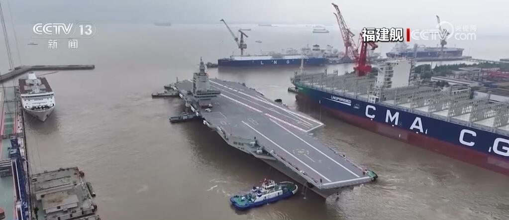 2023年4月,由中國首艘國產(chǎn)航母山東艦組成的航母編隊4月穿越巴士海峽,經(jīng)過臺島東南海域展開首次西太平洋訓練。航母編隊出島鏈開展軍事訓練成為常態(tài)。同年11月30日下午,國防部新聞發(fā)言人披露了我國第三艘航母福建艦開展系泊試驗的消息。而在順利完成系泊試驗和裝設備調(diào)試后,2024年5月1日,海軍福建艦出海開展首次航行試驗。
