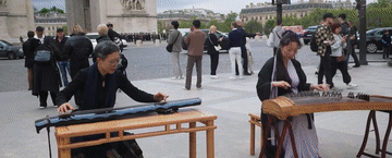 凱旋門(mén)下,神奇的一幕發(fā)生了,中國(guó)藝術(shù)家和法國(guó)軍樂(lè)隊(duì)同框演奏,巴黎街頭同時(shí)回蕩著中法兩國(guó)的音樂(lè)聲。