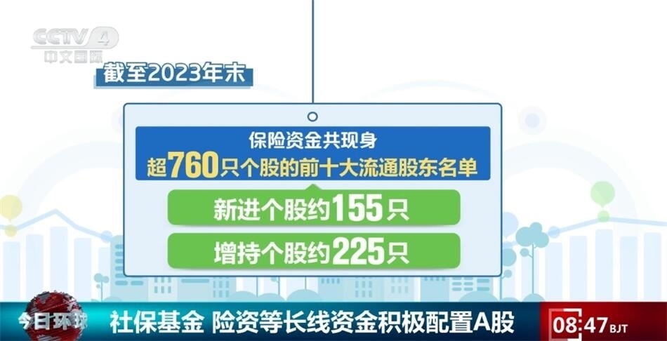 央視網(wǎng)消息:A股2023年年報日前披露結(jié)束,上市公司的前十大流通股東情況顯示,包括社?;稹⒈kU資金、合格境外機構(gòu)投資者等在內(nèi)的長線資金入市步伐正在不斷加快,A股中長期投資力量不斷壯大。