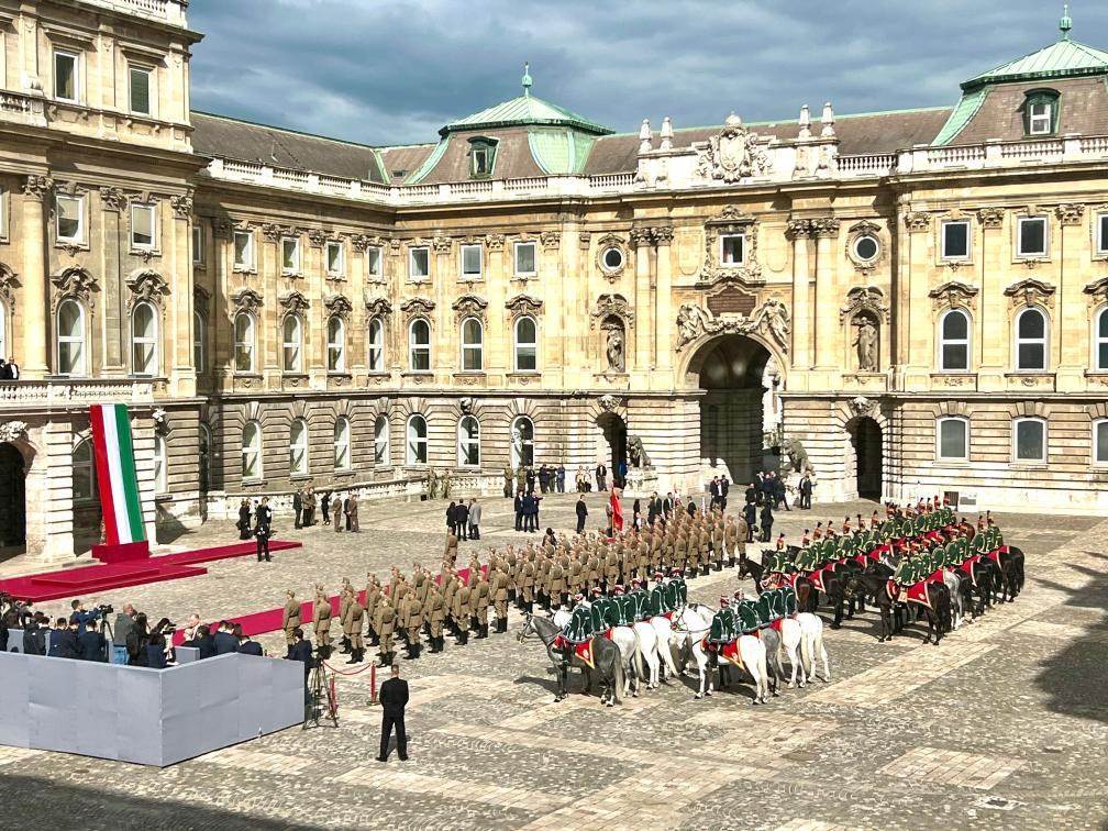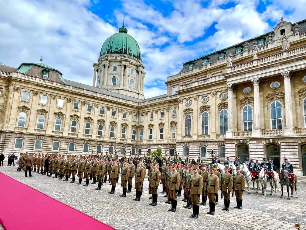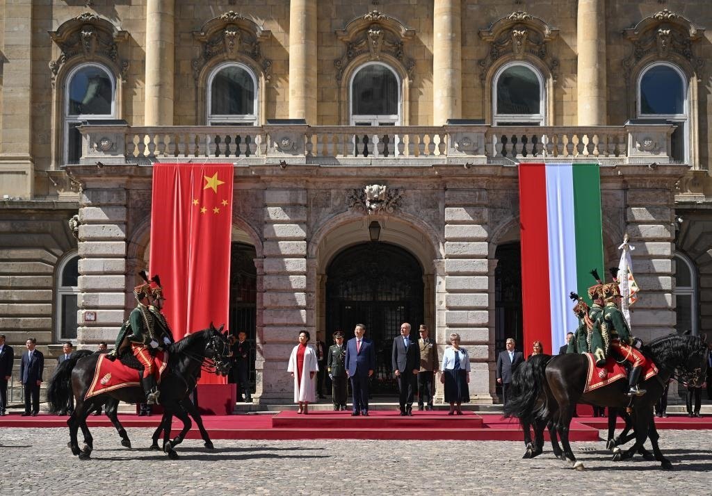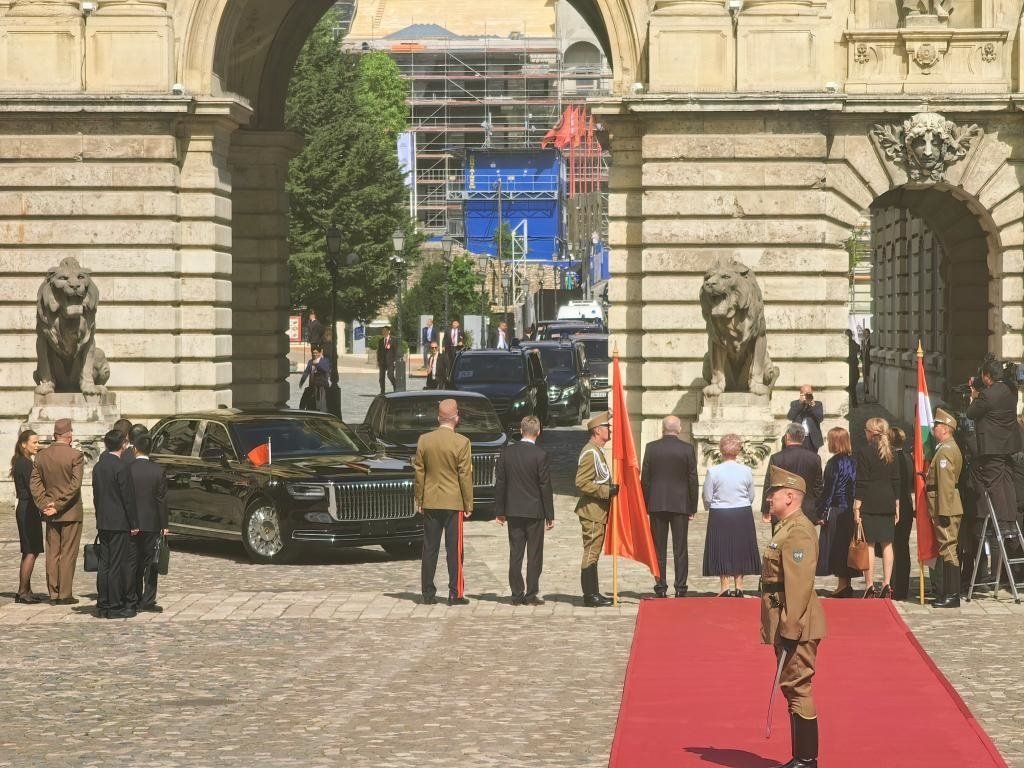 初夏時節(jié)的布達佩斯陽光明媚,古老宏偉的布達王宮莊嚴矗立,中匈兩國國旗相映成輝。習近平和夫人彭麗媛乘坐的國賓車隊在匈牙利禮賓馬隊護衛(wèi)下緩緩駛入布達王宮內庭。舒尤克總統(tǒng)夫婦和歐爾班總理夫婦熱情迎接。
