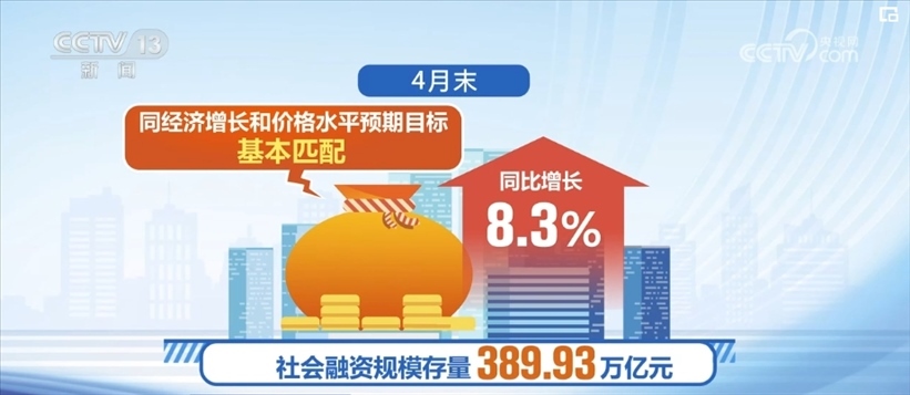 4月末,社會(huì)融資規(guī)模存量389.93萬(wàn)億元,同比增長(zhǎng)8.3%,同經(jīng)濟(jì)增長(zhǎng)和價(jià)格水平預(yù)期目標(biāo)基本匹配。1—4月,社會(huì)融資規(guī)模增量累計(jì)為12.73萬(wàn)億元,處于歷史同期較高水平。