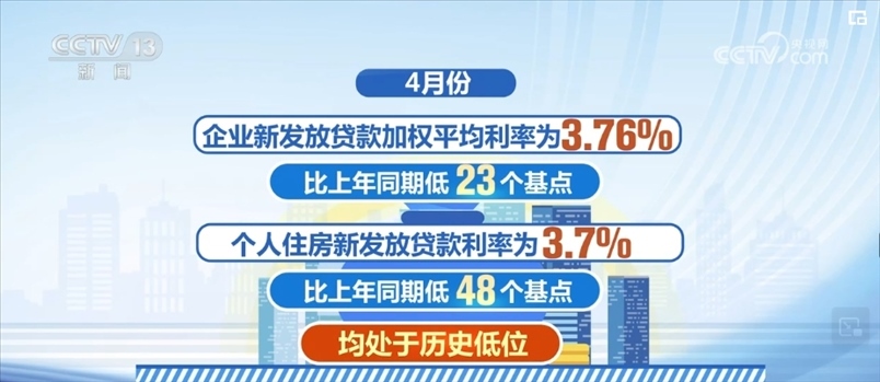 4月份,企業(yè)新發(fā)放貸款加權(quán)平均利率為3.76%,比上年同期低23個(gè)基點(diǎn);個(gè)人住房新發(fā)放貸款利率為3.7%,比上年同期低48個(gè)基點(diǎn),均處于歷史低位。