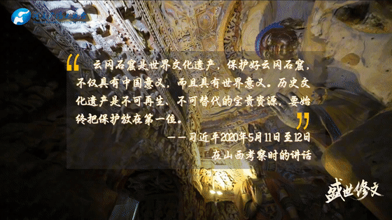 云岡石窟是世界文化遺產(chǎn),保護(hù)好云岡石窟,不僅具有中國意義,而且具有世界意義。歷史文化遺產(chǎn)是不可再生、不可替代的寶貴資源,要始終把保護(hù)放在第一位。