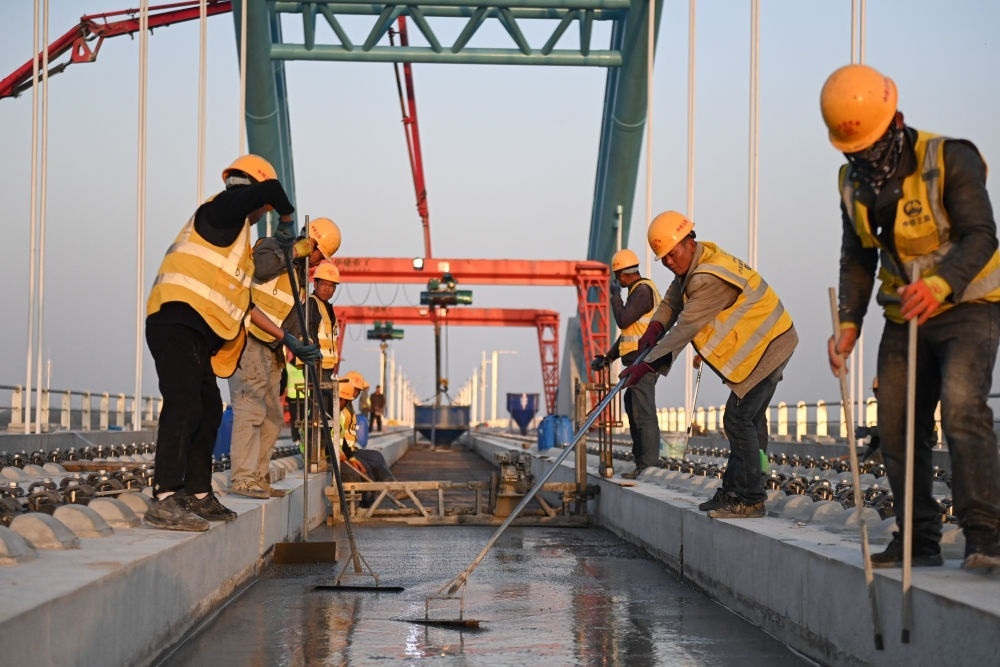 2024年3月20日,中鐵三局建設者在滬蘇湖鐵路東苕溪特大橋上施工。滬蘇湖鐵路起自上海虹橋站,途經江蘇省蘇州市,終至浙江省湖州市湖州站。項目建成運營后,將進一步完善區(qū)域路網布局,促進沿線經濟社會發(fā)展和長三角一體化高質量發(fā)展。新華社記者 黃宗治 攝