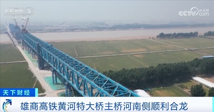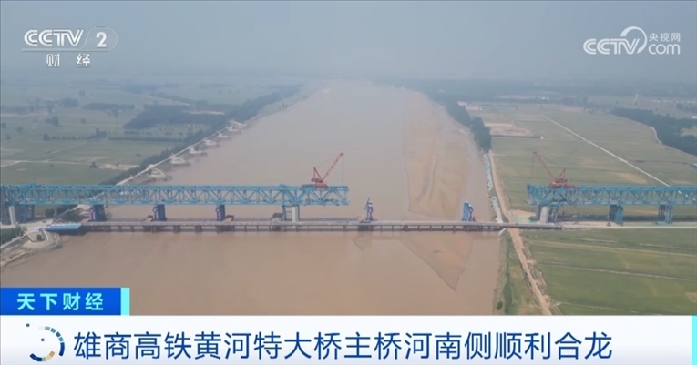 央視網(wǎng)消息:雄商高鐵是京雄商高鐵的一段,連接河北省雄安新區(qū)和河南商丘。5月18日,雄商高鐵黃河特大橋河南側(cè)的鋼桁梁架設施工全部完成,這標志著主橋河南側(cè)已經(jīng)順利合龍。截至目前,全橋鋼桁梁架設的進度超過了87%,預計主橋全橋7月份合龍。