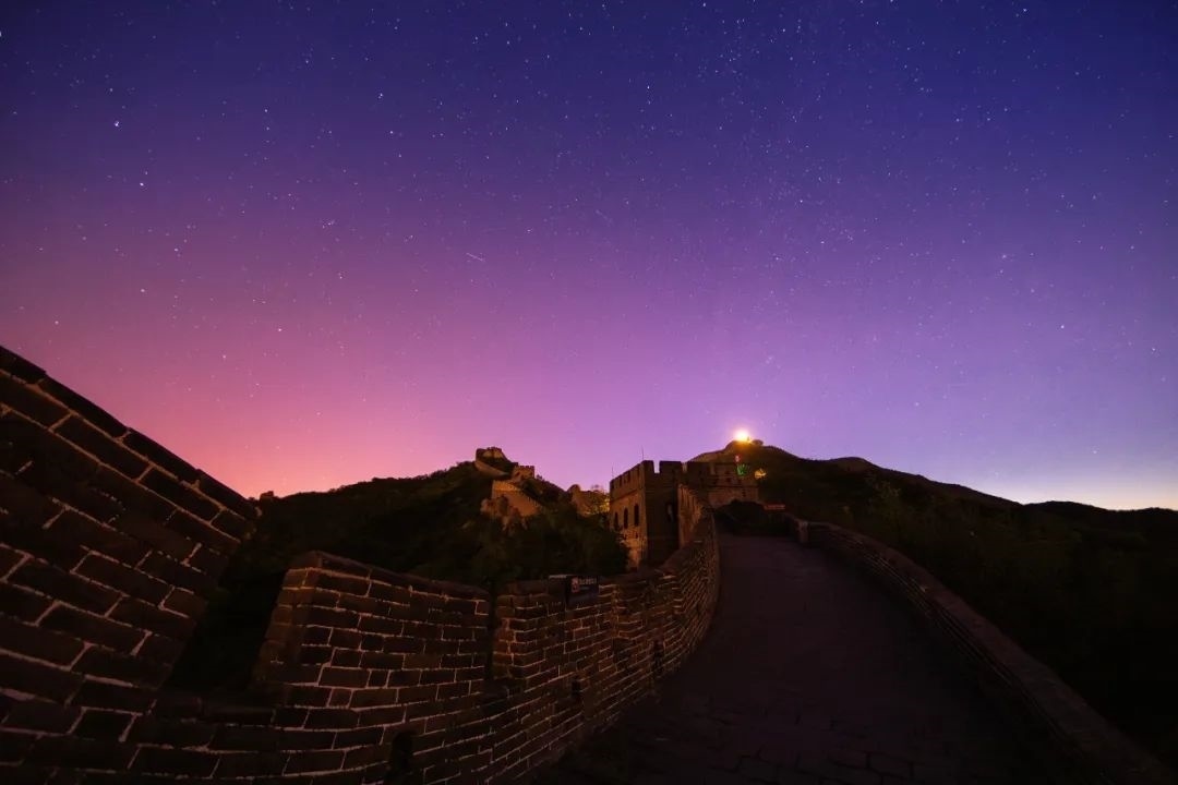 這條巨龍就是北京八達嶺長城。夜色下的八達嶺長城有著和白天不一樣的美,她更深邃、更安靜,仿佛無聲講述著千百年來的歷史賡續(xù)。