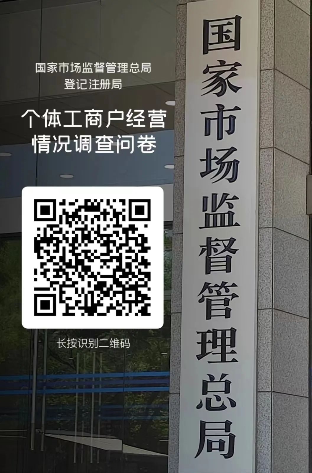 您好!為更好地了解個體工商戶生存發(fā)展?fàn)顩r,摸清個體工商戶發(fā)展中的難點痛點堵點問題,傾聽大家對包括市場監(jiān)管部門在內(nèi)的各部門、各方面建議,推動在支持個體工商戶穩(wěn)信心、渡難關(guān)、謀發(fā)展上定實策、出實招,作為全國個體工商戶的“娘家人”,我們專門設(shè)計了這份調(diào)查問卷。熱切地期盼您能抽出寶貴時間填寫問卷,留下您寶貴的意見建議。