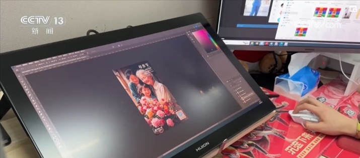 AI畫師鄧博正在設計一幅母親節(jié)的主題海報。如果使用傳統(tǒng)手繪加圖片編輯方式,這樣一張海報鄧博至少要做上兩到三天。不過現(xiàn)在,使用AI進行輔助生成,從接到需求到交付出多張不同風格的高質(zhì)量海報,鄧博只用了不到10分鐘的時間。