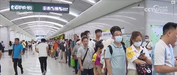 讓陳紅一家人始料不及的是,像她們一樣前來(lái)體驗(yàn)新線路的旅客不在少數(shù),安檢站排起了大長(zhǎng)隊(duì)。等到她們進(jìn)站之后,首班車已經(jīng)開走,但她們卻也并不著急。