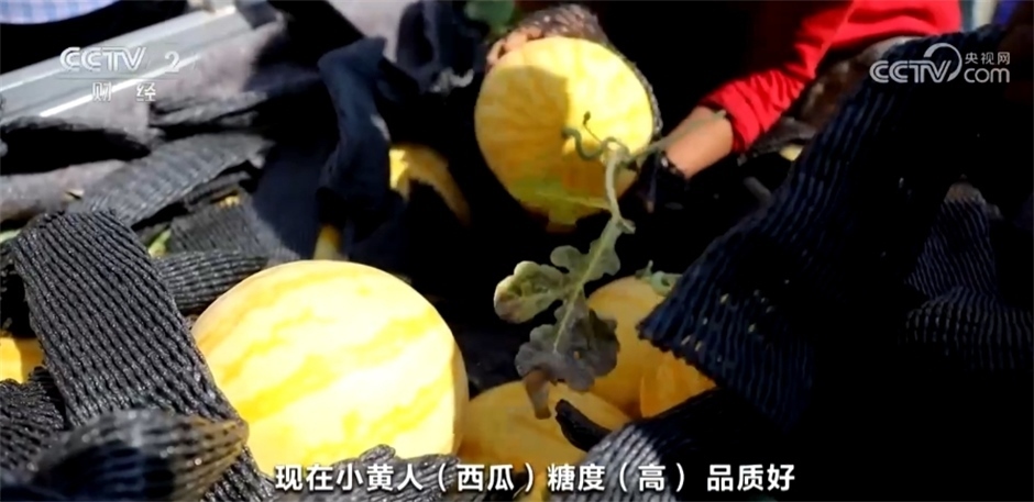 西瓜收購(gòu)商稱(chēng):“我今天來(lái)這兒收小黃人西瓜,發(fā)往鄭州、北京、上海,各個(gè)大城市都發(fā)?,F(xiàn)在,小黃人西瓜糖度高、品質(zhì)好。