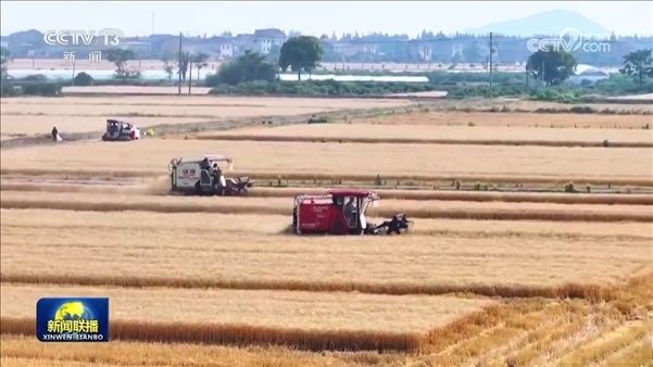 夏收期間,安徽省重點結合小麥實際成熟時間,引導南北地市結對子,開展“北機南下、南機北援”行動,有效提升小麥搶收保障能力。河南8500多萬畝小麥進入收割高峰,記者在正陽縣采訪時發(fā)現,今年當地投入了新型收割機,機收損失率可以降低到0.6%。與此同時,一系列智能化新型農機也“組團”投入今年的麥收。