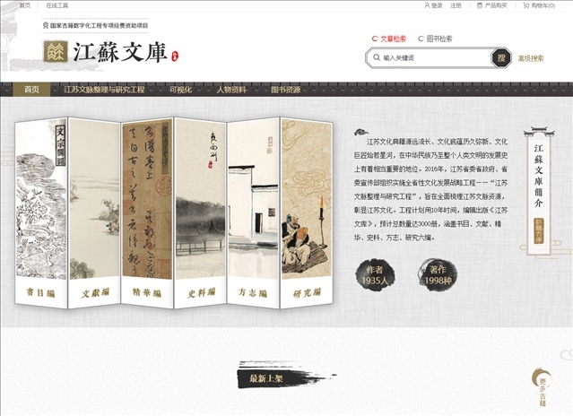 △《江蘇文庫(kù)》數(shù)據(jù)庫(kù)軟件平臺(tái)首頁(yè)截圖