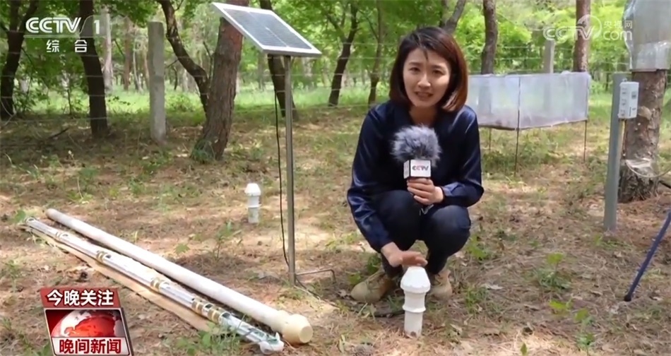 要了解樟子松的生長密碼,單靠監(jiān)測這一項(xiàng)是不夠的。在整個(gè)林子中,有十幾個(gè)設(shè)備都正在為這片樟子松林做著24小時(shí)不間斷的體檢。像這個(gè)2米長的大管子,像一個(gè)體溫計(jì),里面在不同深度安裝了6層傳感器。把它直接插到土壤中,就可以監(jiān)測出地塊土壤的濕度、溫度、鹽分、肥力等。