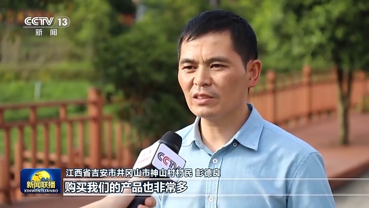 江西省吉安市井岡山市神山村村民 彭德良:游客越來越多,購買我們的產(chǎn)品也非常多,給我們增加了很大的收入。