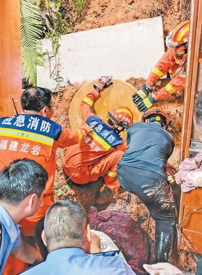 6月17日,消防人員在福建省龍巖市武平縣象洞鎮(zhèn)開展救援。周楊東攝(新華社發(fā))