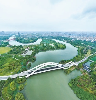 生態(tài)保護揚州三河六岸公園遠景。本報記者 雷 聲攝