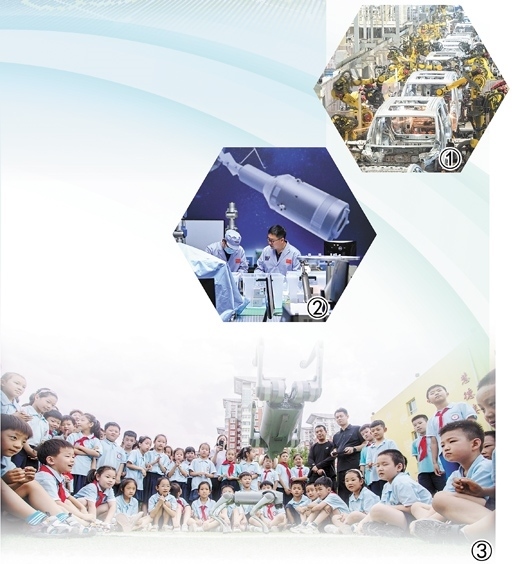 圖①:湖北武漢經(jīng)開區(qū)的嵐圖汽車電動(dòng)化焊裝車間,機(jī)器人正在流水線上作業(yè)。 新華社記者 肖藝九攝 圖②:中國(guó)科學(xué)院空間光學(xué)系統(tǒng)在軌制造與集成重點(diǎn)實(shí)驗(yàn)室的科研人員在進(jìn)行科研工作。 新華社記者 許 暢攝 圖③:河北邯鄲市復(fù)興區(qū)前進(jìn)小學(xué)的學(xué)生們?cè)谟^看機(jī)器狗表演。聶長(zhǎng)青攝(人民視覺(jué))