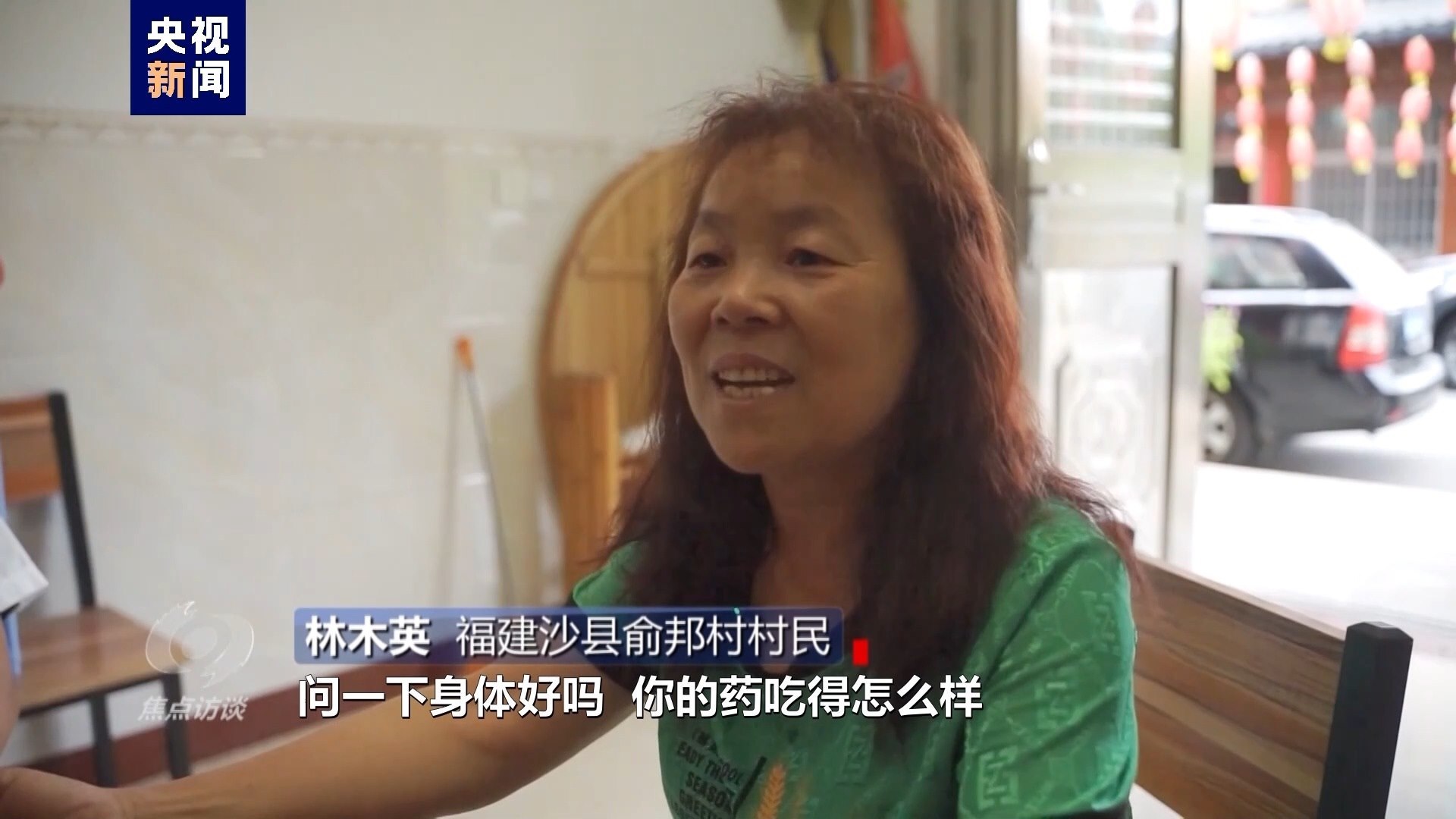 福建沙縣俞邦村村民 林木英:現(xiàn)在醫(yī)生很好,都會來找我們,來問一下身體好嗎?你的藥吃得怎么樣?