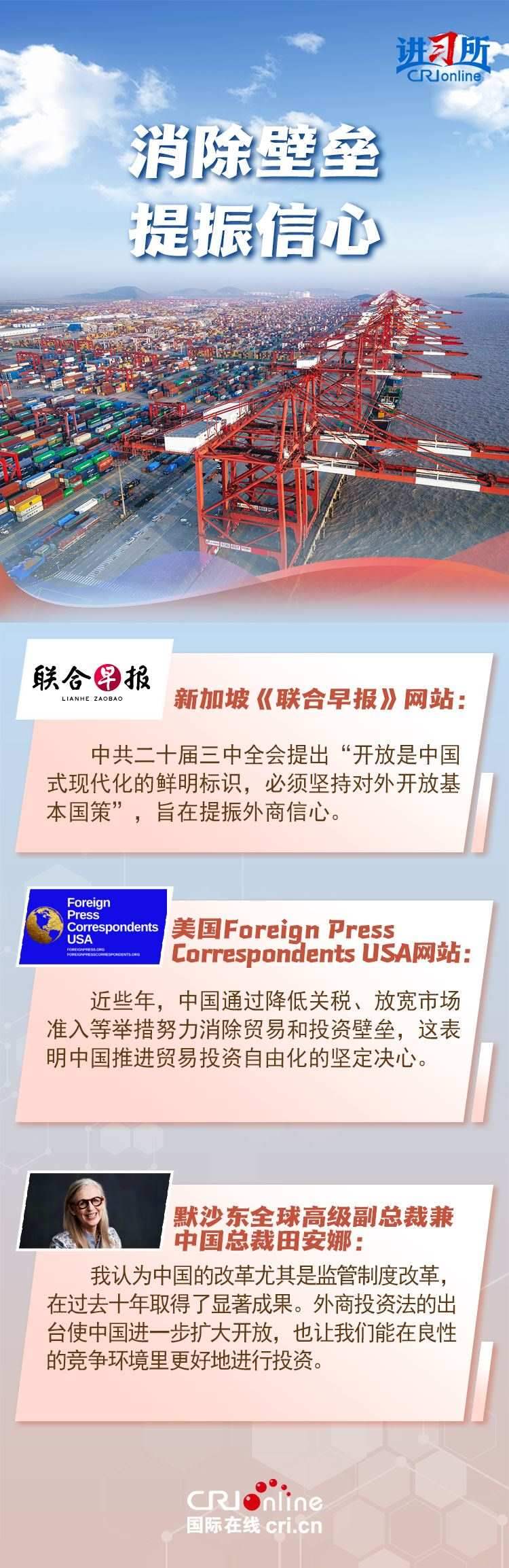 開放是中國式現(xiàn)代化的鮮明標識,也是國際社會持續(xù)關(guān)注中國全面深化改革的重點所在?!皟?yōu)化營商環(huán)境”“放寬市場準入”“144小時過境免簽”……中國高水平對外開放,既有高屋建瓴的頂層設(shè)計,又有觸及民心的靈活實踐,給世界帶來信心與機遇。