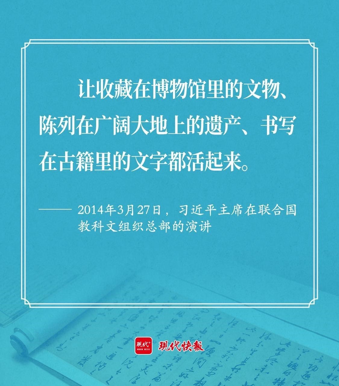 黨的十八大以來,習(xí)近平總書記多次強(qiáng)調(diào),要系統(tǒng)梳理傳統(tǒng)文化資源,讓收藏在深宮里的文物、陳列在廣闊大地上的遺產(chǎn)、書寫在古籍里的文字都活起來。