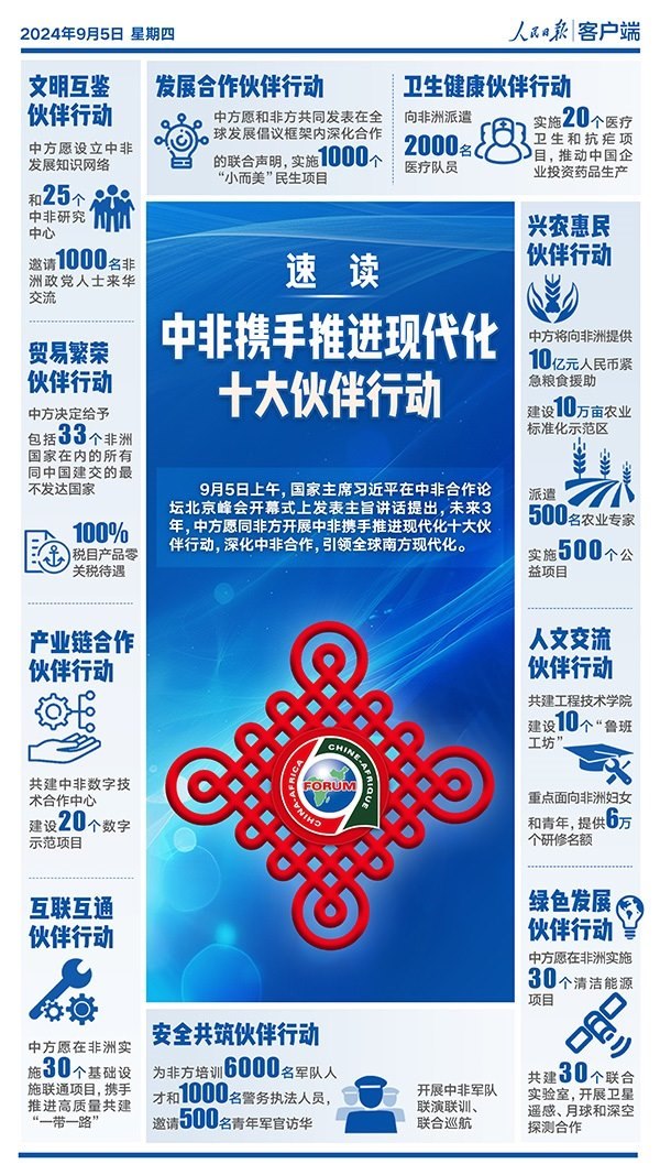 一圖速讀!中非攜手推進(jìn)現(xiàn)代化十大伙伴行動(dòng)