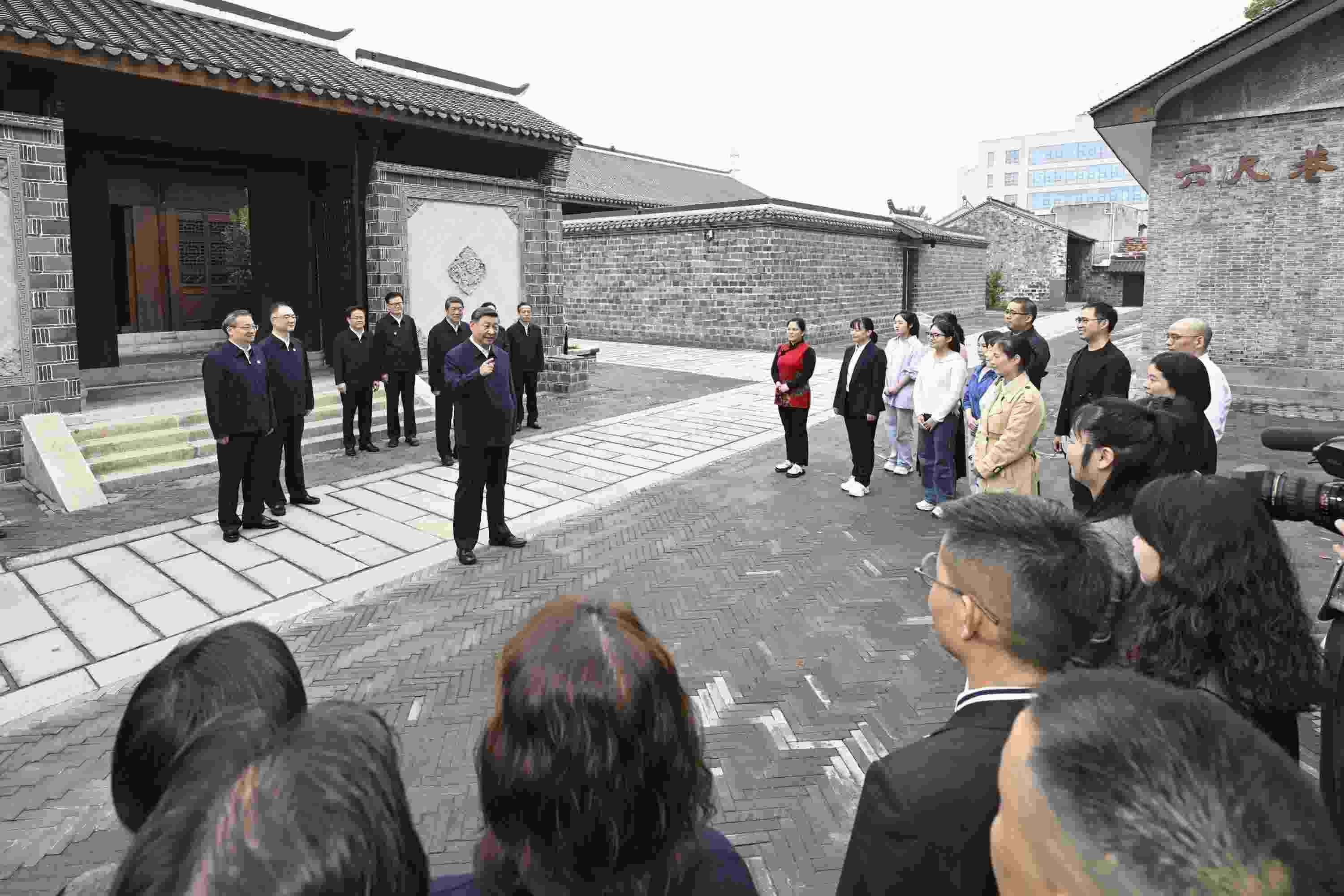 △2024年10月17日,習(xí)近平總書(shū)記在安徽省安慶桐城市六尺巷考察時(shí),同當(dāng)?shù)鼐用窈陀慰陀H切交流。