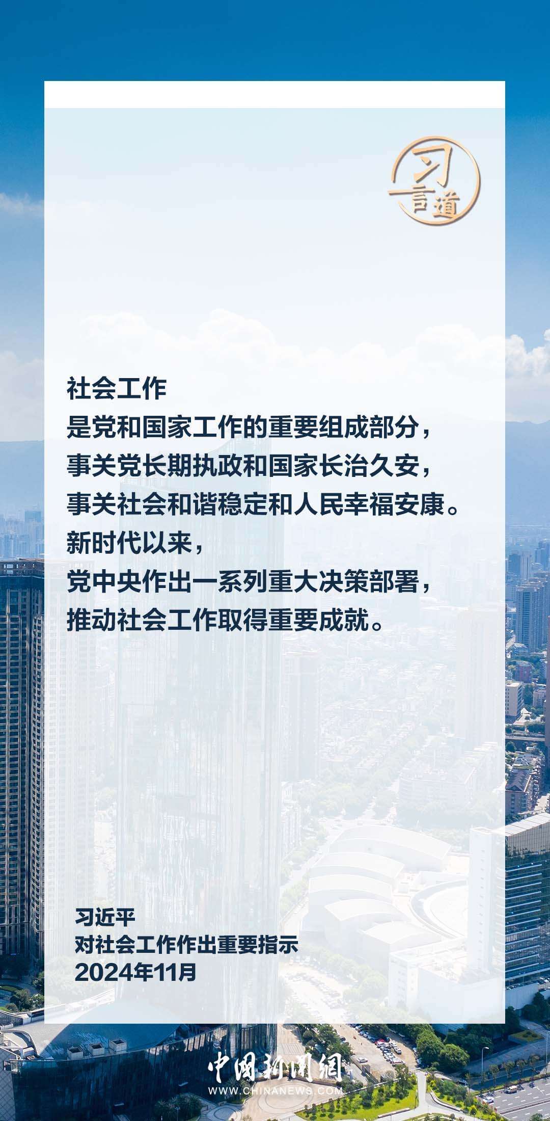 中共中央總書記、國家主席、中央軍委主席習(xí)近平近日對社會工作作出重要指示指出——