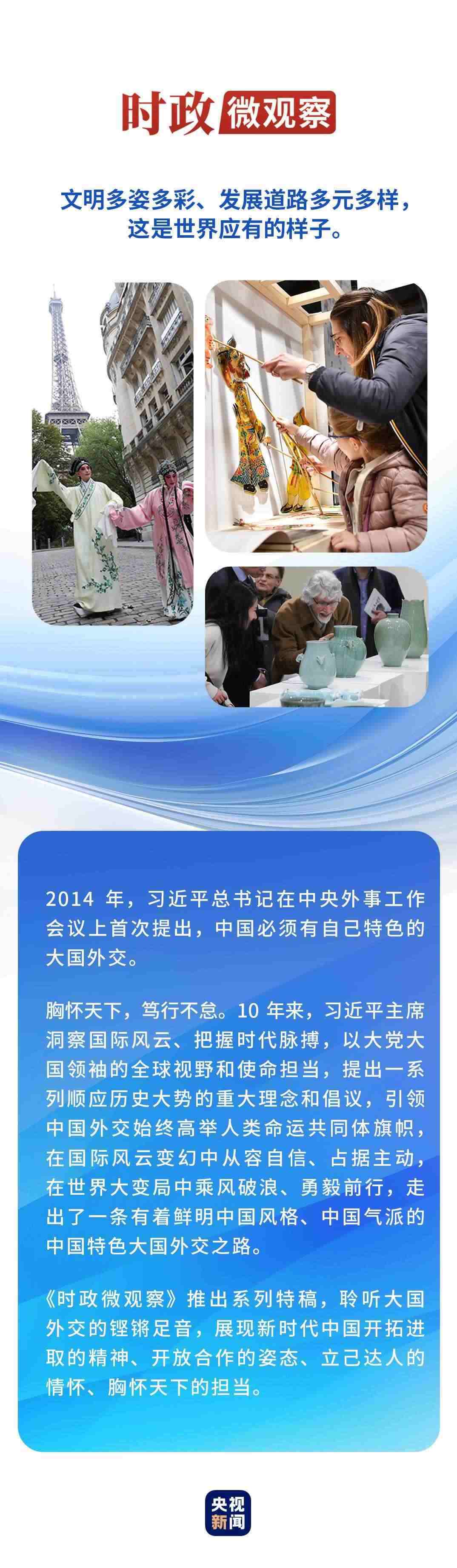 文明如水,潤(rùn)物無(wú)聲?;赝袊?guó)特色大國(guó)外交的10年歷程,習(xí)近平主席以開(kāi)闊的文化視野、深厚的文化積淀和堅(jiān)定的文化自信,親自推動(dòng)不同文明交流交融、互學(xué)互鑒,為建設(shè)美好世界注入深厚持久力量。