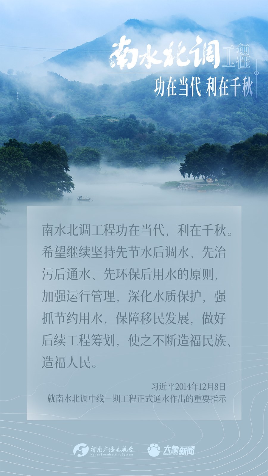今年是南水北調(diào)東、中線一期工程通水10周年。南水北調(diào)工程事關(guān)戰(zhàn)略全局、事關(guān)長遠發(fā)展、事關(guān)人民福祉,一直是習(xí)近平總書記的牽掛。黨的十八大以來,總書記多次實地考察項目進展、運行,作出重要講話重要指示批示,為南水北調(diào)工程持續(xù)高質(zhì)量發(fā)展指明方向。