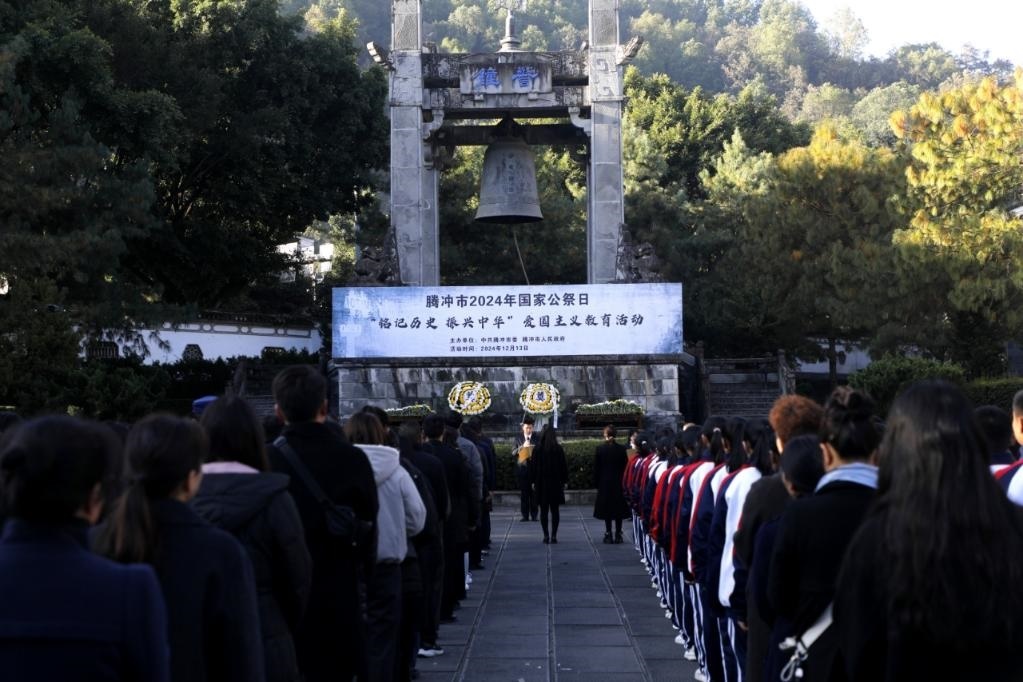 騰沖市在滇西抗戰(zhàn)紀(jì)念館開展2024年國家公祭日“銘記歷史 振興中華”愛國主義教育活動。(官智欽攝)