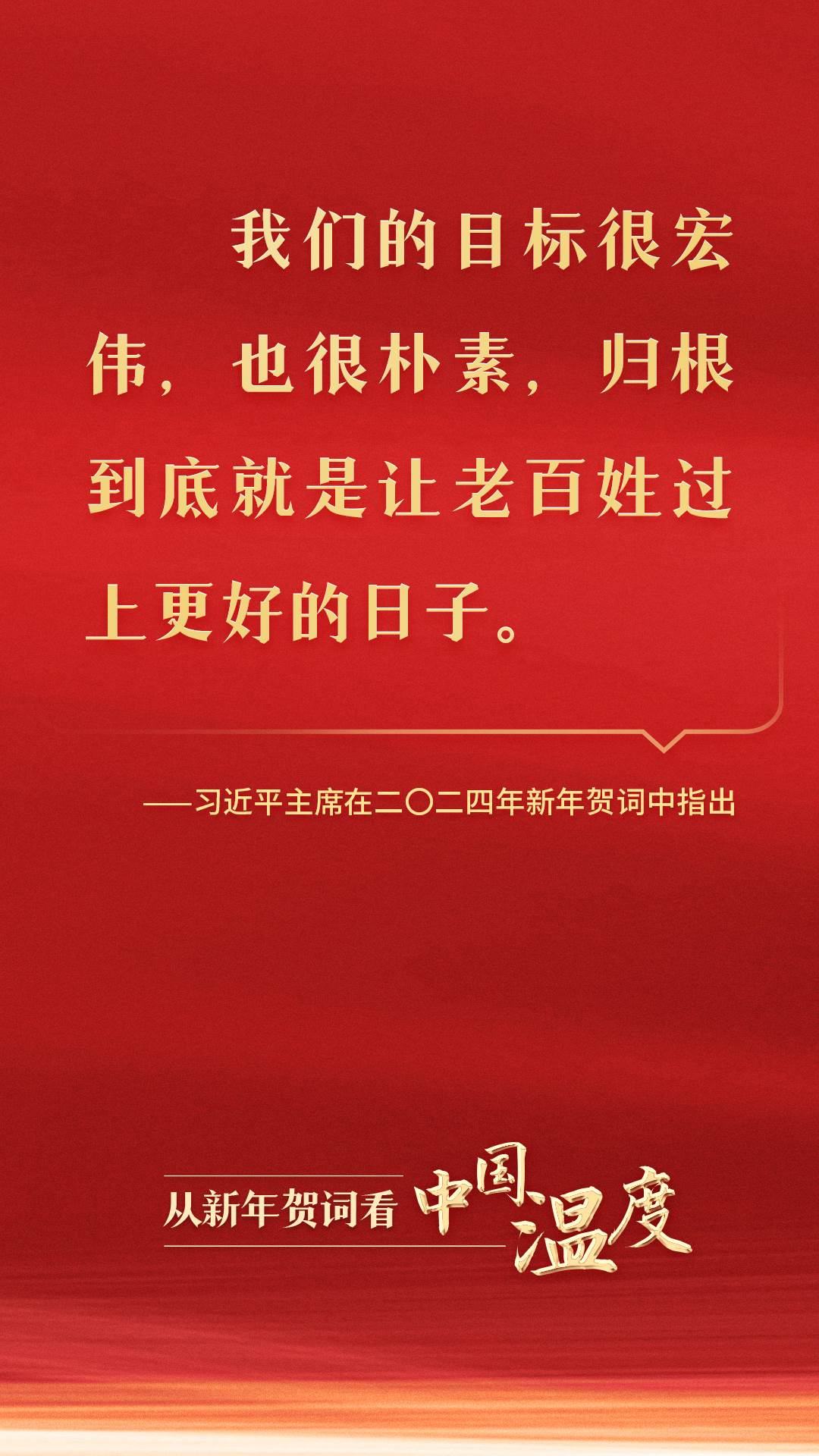 從黃土地走來(lái),從大隊(duì)黨支部書記到黨和國(guó)家最高領(lǐng)導(dǎo)人,習(xí)近平同志深諳國(guó)情、社情、民情。在二〇二四年新年賀詞中,習(xí)近平主席話語(yǔ)懇切:“我們的目標(biāo)很宏偉,也很樸素,歸根到底就是讓老百姓過(guò)上更好的日子。”