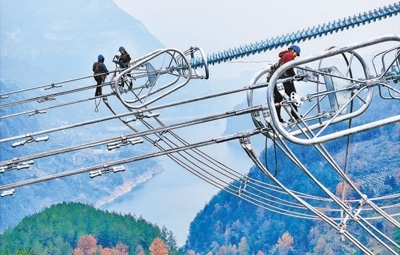 西南深山,電力工人在百米高空“走鋼絲”安裝間隔棒,讓導(dǎo)線保持安全距離;中部平原,機械設(shè)備在占地約360畝的終端換流站忙碌作業(yè),電纜敷設(shè)量超過1100公里……眼下,近萬名建設(shè)者正齊心協(xié)力,加快建設(shè)金沙江上游至湖北±800千伏特高壓直流輸電工程(以下簡稱“金上至湖北特高壓”)。