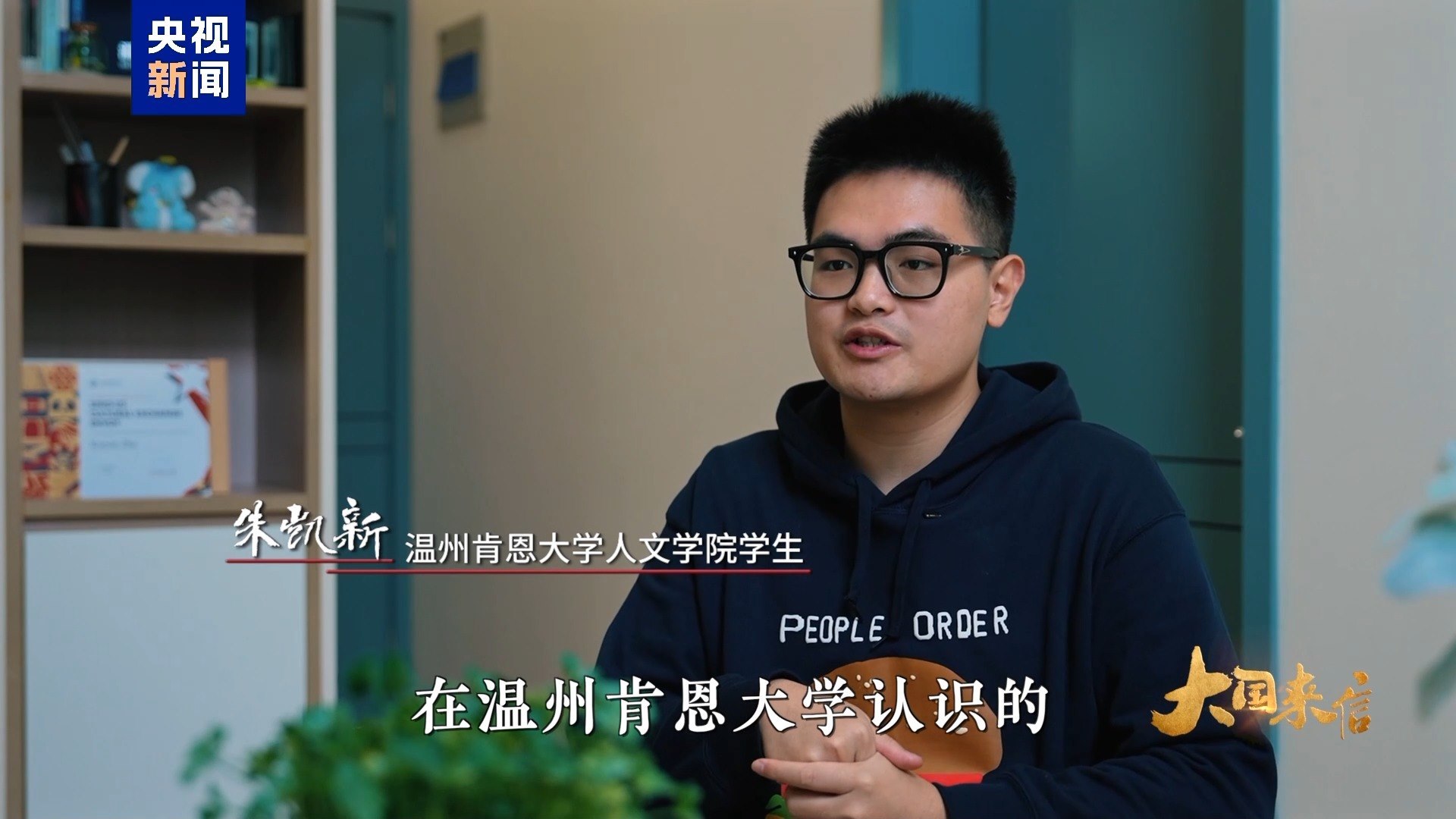 溫州肯恩大學(xué)人文學(xué)院學(xué)生 朱凱新:我有一位特別好的朋友,他叫亞歷山德羅,我跟他是在去年在溫州肯恩大學(xué)認(rèn)識的,我們真是一見如故。我們也一起去了很多中國的城市,我會覺得這是一個特別特別好的機(jī)會,能夠帶我們的美國朋友感受我們中國的博大精深、壯美的風(fēng)景。我們一起去了上海,一起去了西安。去西安是因?yàn)樗貏e喜歡兵馬俑,我們一直保持著聯(lián)系。