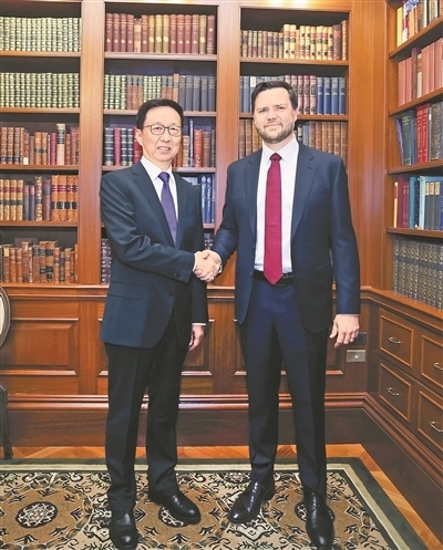 會見萬斯時,韓正首先轉(zhuǎn)達(dá)習(xí)近平主席對特朗普總統(tǒng)的問候,并祝賀萬斯當(dāng)選。韓正表示,近日習(xí)近平主席同特朗普總統(tǒng)進(jìn)行了重要通話,就下階段中美關(guān)系發(fā)展達(dá)成許多重要共識。中方愿同美方一道,堅(jiān)持元首外交的戰(zhàn)略引領(lǐng),落實(shí)好習(xí)近平主席同特朗普總統(tǒng)達(dá)成的重要共識,推動中美關(guān)系穩(wěn)定、健康、可持續(xù)發(fā)展。