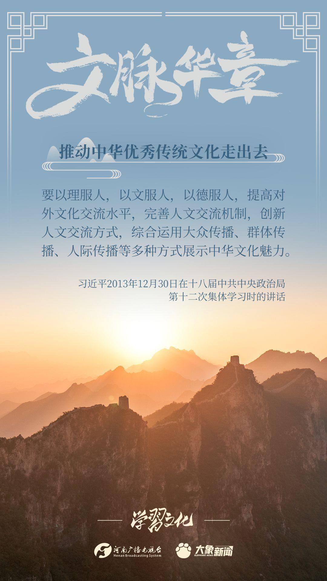 黨的十八大以來,習(xí)近平總書記高度重視中華優(yōu)秀傳統(tǒng)文化的傳承發(fā)展,突出強(qiáng)調(diào)推動(dòng)中華優(yōu)秀傳統(tǒng)文化走出去,作出了一系列重要論述,大象新聞邀您一起學(xué)習(xí)。