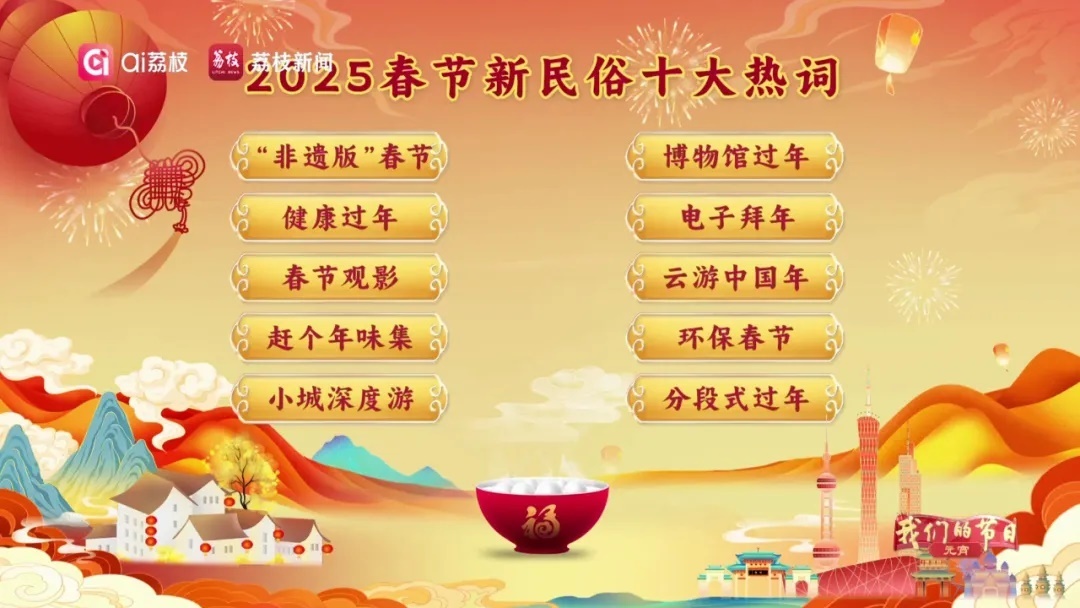 此次網(wǎng)友票選出的前十名新民俗熱詞涉及春節(jié)相關(guān)的節(jié)點(diǎn)大事,傳遞出千姿百態(tài)的過節(jié)方式,映射了時(shí)代變遷下不斷更新的過節(jié)態(tài)度,不同的春節(jié)“打開方式”,哪個(gè)詞語(yǔ)與你最有共鳴呢?