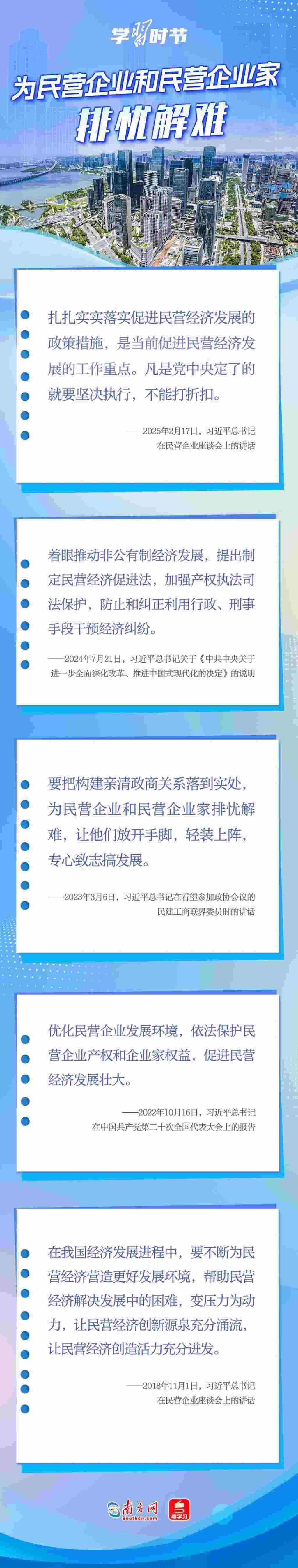 黨的十八大以來,習(xí)近平總書記對民營經(jīng)濟(jì)發(fā)展高度重視、念茲在茲,多次重申堅持“兩個毫不動搖”的重要方針,強(qiáng)調(diào)鼓勵、支持、引導(dǎo)非公有制經(jīng)濟(jì)繼續(xù)發(fā)展壯大,為實現(xiàn)民營經(jīng)濟(jì)健康發(fā)展、高質(zhì)量發(fā)展注入強(qiáng)大信心和動力。讓我們一起學(xué)習(xí)習(xí)近平總書記關(guān)于民營經(jīng)濟(jì)的重要論述,在關(guān)鍵時刻讓民營企業(yè)和民營企業(yè)家堅定發(fā)展信心,踏踏實實謀發(fā)展。