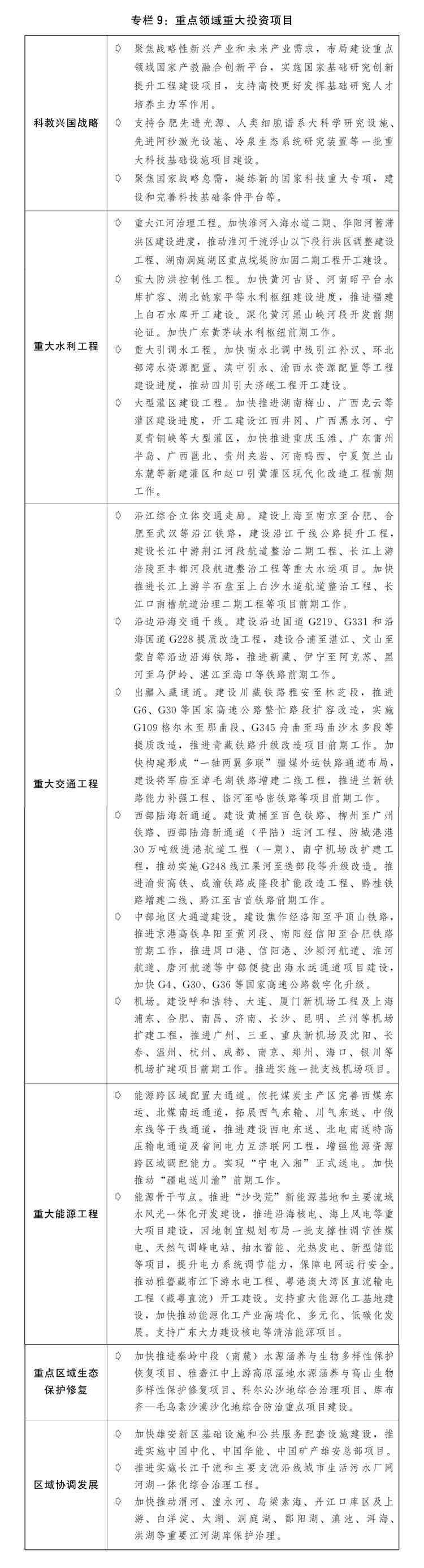 四是政府投資作用有效發(fā)揮。統(tǒng)籌用好中央預(yù)算內(nèi)投資、地方政府專項(xiàng)債券、2023年增發(fā)國債、超長期特別國債等支持重點(diǎn)項(xiàng)目建設(shè)。優(yōu)化中央預(yù)算內(nèi)投資投向領(lǐng)域,強(qiáng)化項(xiàng)目監(jiān)督管理。優(yōu)化地方政府專項(xiàng)債券管理機(jī)制,實(shí)施專項(xiàng)債券投向領(lǐng)域“負(fù)面清單”管理。加強(qiáng)項(xiàng)目謀劃儲(chǔ)備,強(qiáng)化用地、用海、用能、環(huán)評(píng)等要素保障,加強(qiáng)項(xiàng)目全生命周期管理。推動(dòng)“十四五”規(guī)劃102項(xiàng)重大工程取得積極進(jìn)展。2023年1萬億元增發(fā)國債支持的1.5萬個(gè)項(xiàng)目加快實(shí)施,一大批災(zāi)后恢復(fù)重建和防災(zāi)減災(zāi)救災(zāi)能力提升項(xiàng)目按期建成。