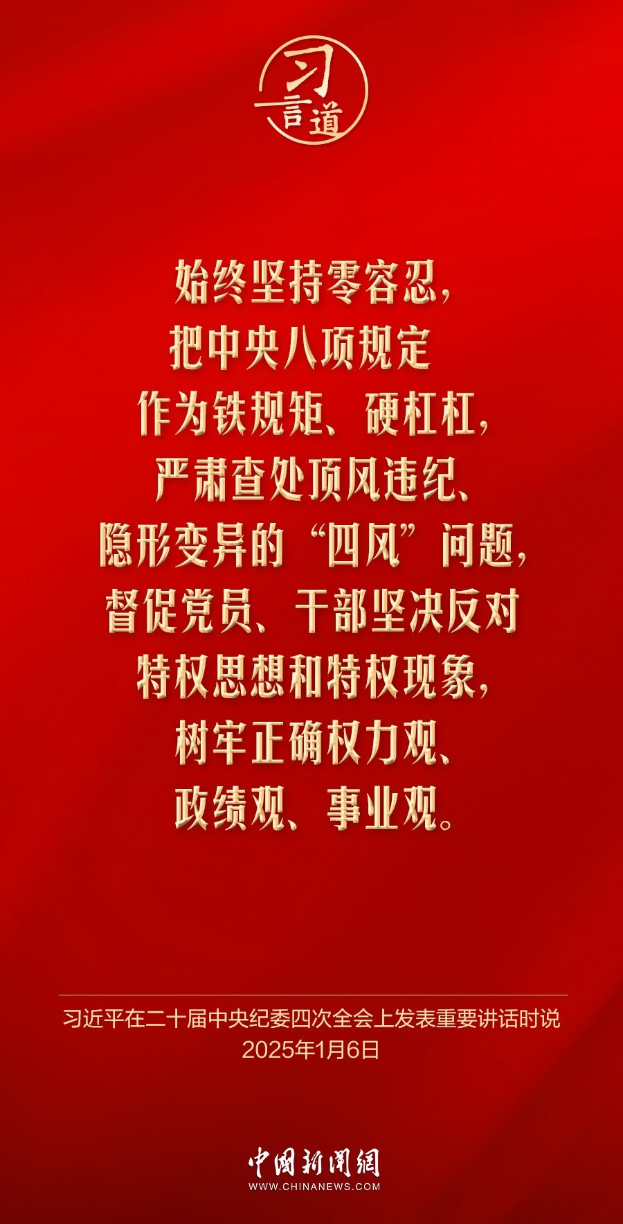 黨中央決定,自2025年全國兩會后至7月在全黨開展深入貫徹中央八項規(guī)定精神學習教育。黨的作風就是黨的形象,關系人心向背,決定黨和國家事業(yè)成敗。習近平總書記高度重視作風建設,就貫徹落實中央八項規(guī)定精神、深化作風建設作出一系列重要論述——