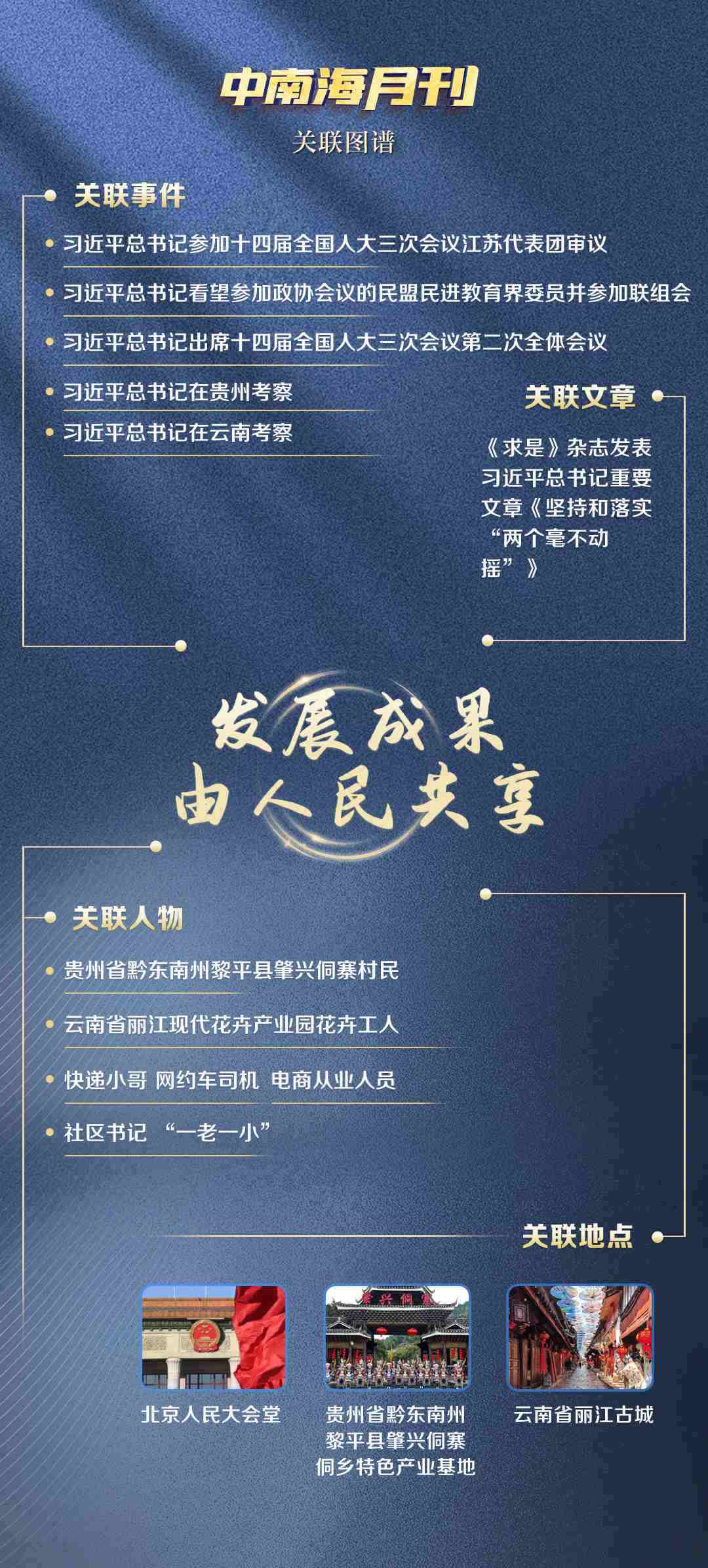 觀察央視網(wǎng)I學(xué)習(xí)數(shù)據(jù)庫(kù)生成的3月關(guān)聯(lián)圖譜,無(wú)論是對(duì)高質(zhì)量發(fā)展的謀篇布局,還是推動(dòng)優(yōu)秀傳統(tǒng)文化守正創(chuàng)新,“發(fā)展成果由人民共享”的理念始終貫穿其中,“致廣大而盡精微”的治理方法也清晰可見(jiàn)。