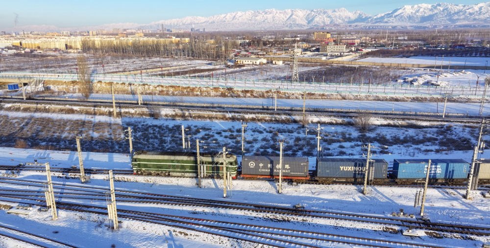 2024年12月25日,一列中歐班列經(jīng)霍爾果斯口岸駛向哈薩克斯坦(無人機(jī)照片)?;魻柟箍诎兜靥幰晾绻_克自治州、毗鄰哈薩克斯坦,是古絲綢之路北道上的千年驛站,也是近現(xiàn)代對外開放的百年口岸,更是我國面向中亞、西亞乃至歐洲的重要物流通道。2024年,該口岸中歐(中亞)班列開行量達(dá)8730列,同比增長12.5%;貨物過貨量達(dá)1208.4萬噸,同比增長10.9%;通行班列線路總數(shù)超過80條,輻射境外18個(gè)國家的46個(gè)城市。