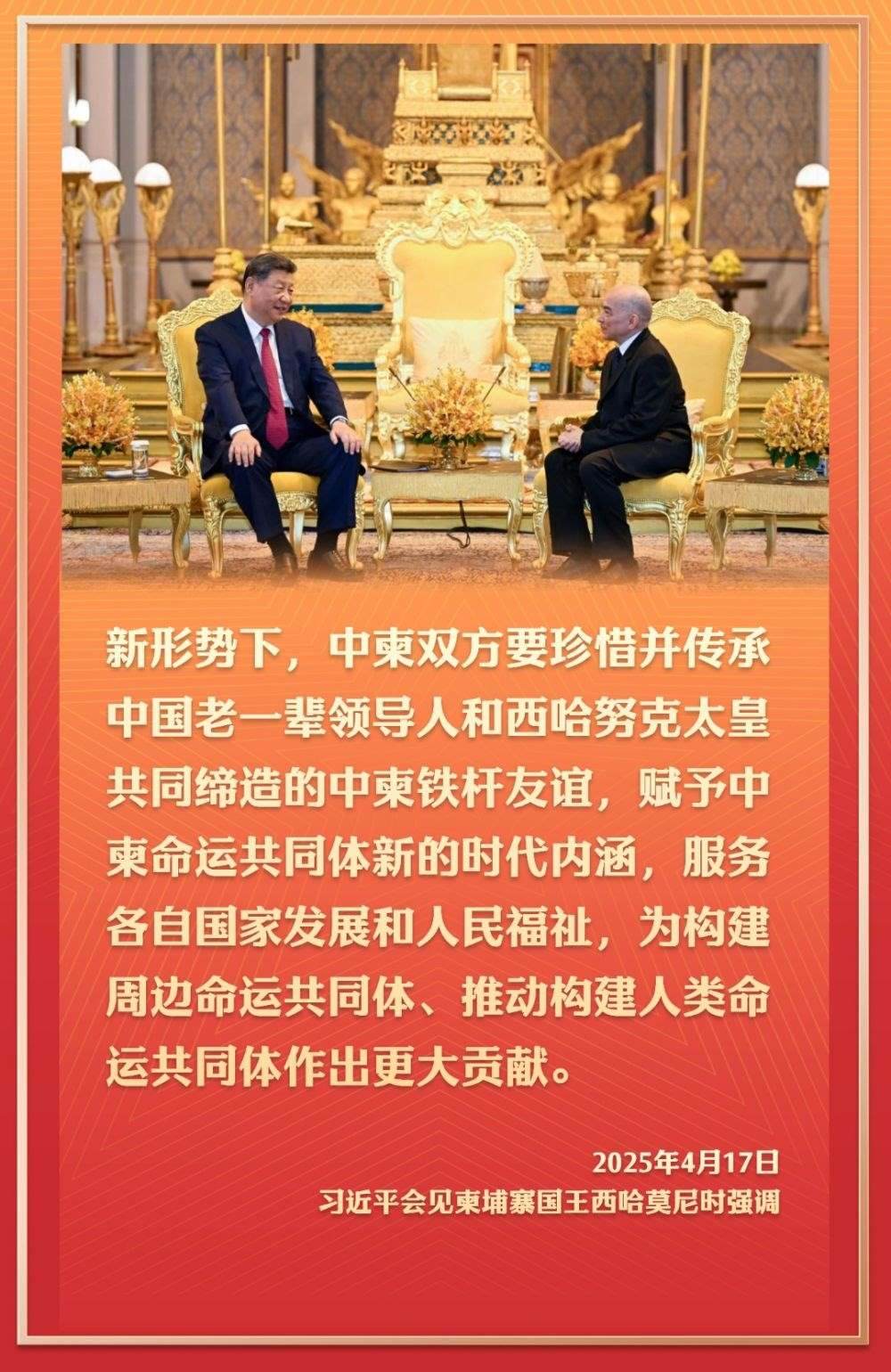 4月17日,應(yīng)柬埔寨國王西哈莫尼邀請,國家主席習(xí)近平抵達金邊,開始對柬埔寨進行國事訪問。