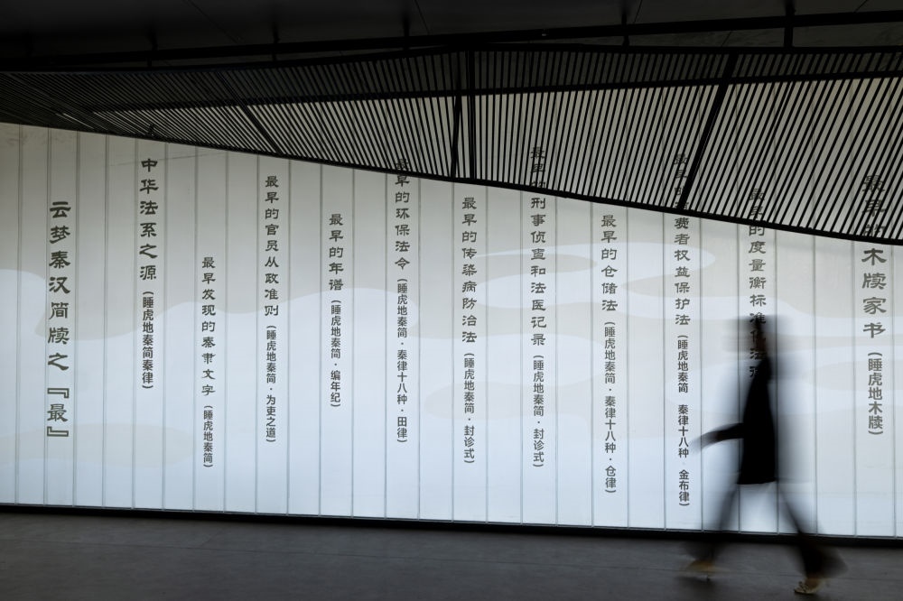 2024年4月15日,觀眾在湖北云夢縣博物館睡虎地秦簡展廳參觀。睡虎地秦簡被發(fā)現于1975年,是中國考古史上首次發(fā)現的秦簡。