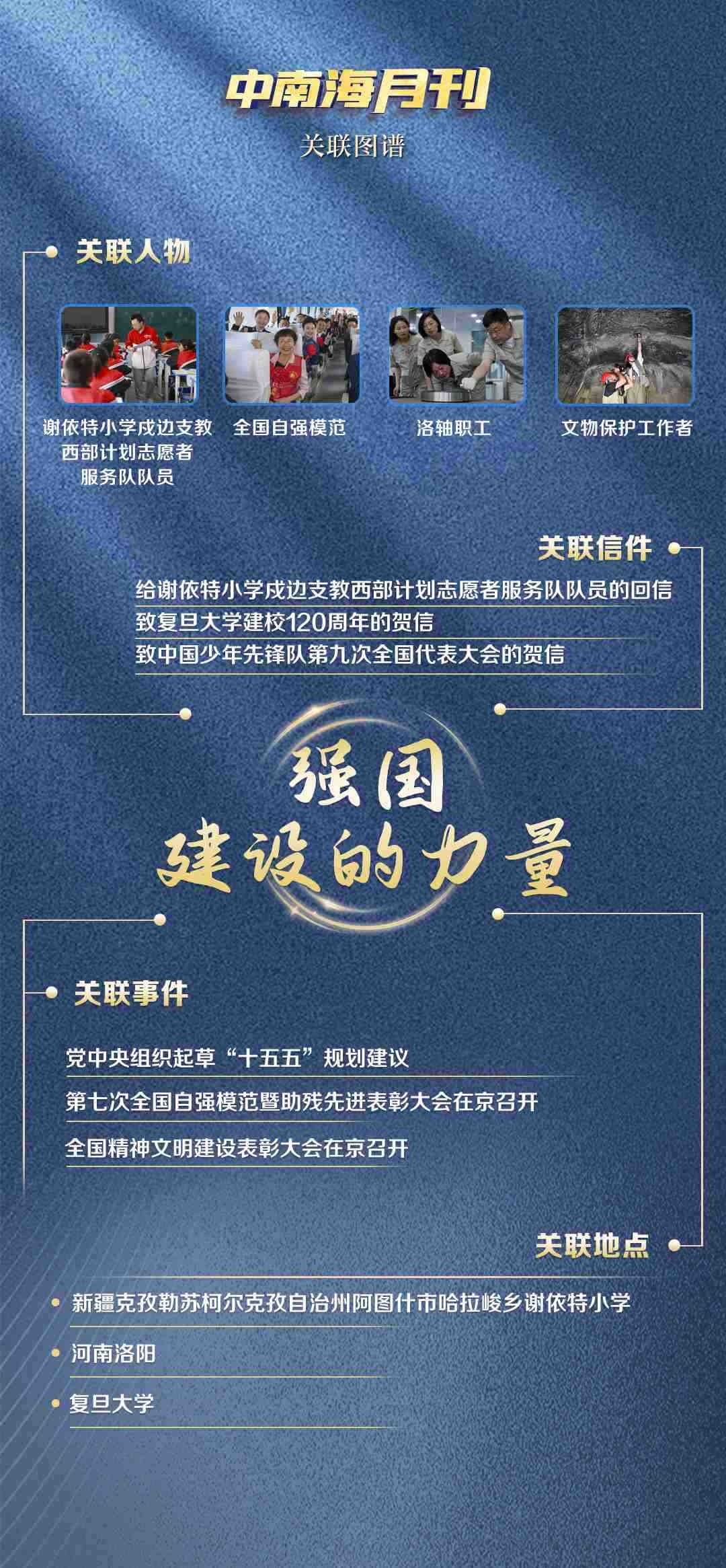 青年是強(qiáng)國(guó)建設(shè)的先鋒隊(duì)、突擊隊(duì)。給謝依特小學(xué)戍邊支教西部計(jì)劃志愿者服務(wù)隊(duì)隊(duì)員回信,總書(shū)記為他們點(diǎn)贊,并鼓勵(lì)廣大青年“厚植家國(guó)情懷,練就過(guò)硬本領(lǐng)”,“為中國(guó)式現(xiàn)代化建設(shè)貢獻(xiàn)青春力量”;致信祝賀復(fù)旦大學(xué)建校120周年,總書(shū)記希望復(fù)旦大學(xué)“深化教育科研改革,推動(dòng)科技自主創(chuàng)新和人才自主培養(yǎng)良性互動(dòng)”,不斷提升服務(wù)國(guó)家重大戰(zhàn)略和區(qū)域經(jīng)濟(jì)社會(huì)發(fā)展能力。