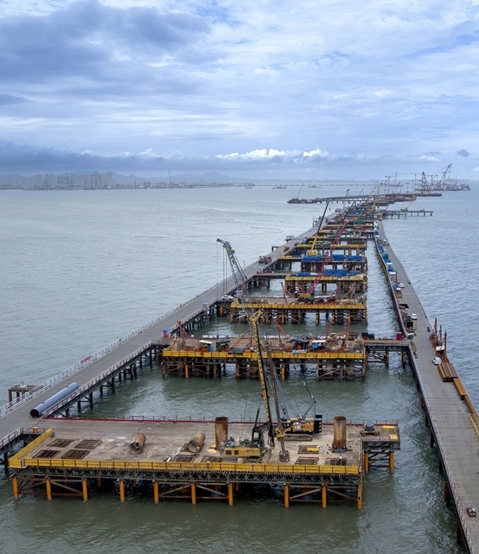 這是廈金大橋(廈門段)海上橋梁大規(guī)模裝配化施工現(xiàn)場(chǎng)(6月13日攝)。
