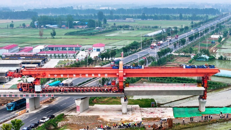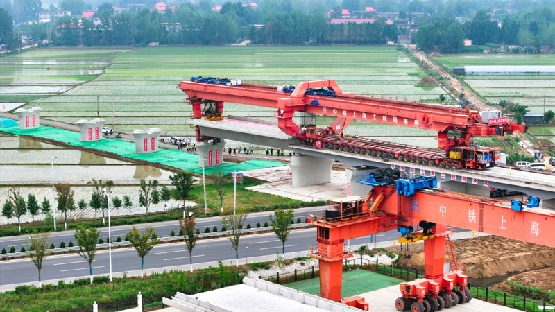 當日,濰(坊)宿(遷)高鐵山東臨沂段首榀箱梁架設成功,正式進入線上架梁施工階段。據(jù)悉,濰宿高鐵是京滬高鐵輔助通道的重要組成部分。