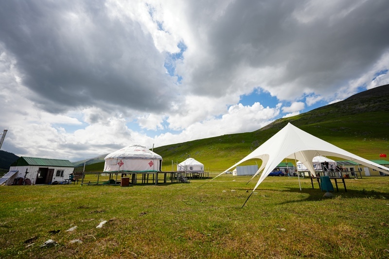 這是6月30日在阿禾公路旁拍攝的由當?shù)卮迕窠洜I的餐飲氈房。