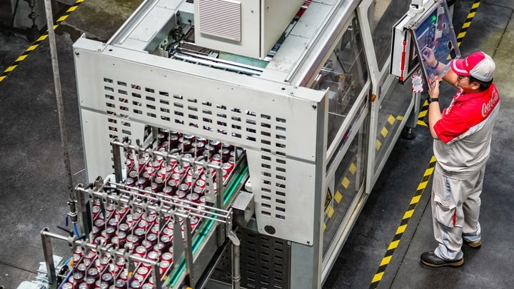 “從空罐上線到清洗、罐裝、包裝、碼垛,全部都自動化實(shí)現(xiàn)?!敝屑Z可口可樂飲料(貴州)有限公司生產(chǎn)技術(shù)部兼安全質(zhì)量環(huán)保部總監(jiān)周林林介紹,公司的自動化易拉罐裝飲料生產(chǎn)線每小時可灌裝飲料24000罐,“未來還要不斷升級”。