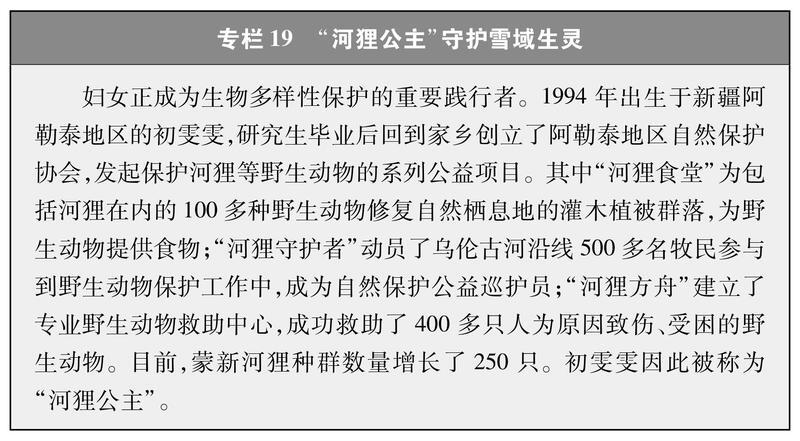 推動(dòng)生態(tài)系統(tǒng)保護(hù)修復(fù)。統(tǒng)籌推進(jìn)山水林田湖草沙一體化保護(hù)和系統(tǒng)治理,著力構(gòu)建從山頂?shù)胶Q蟮谋Wo(hù)治理大格局。廣大婦女積極投身生態(tài)系統(tǒng)保護(hù)修復(fù),在19.07萬(wàn)平方公里的三江源國(guó)家公園,有1.7萬(wàn)余名生態(tài)管護(hù)員日夜堅(jiān)守,其中婦女占33.3%;海南昌江黎族自治縣的“植樹娘子軍”,30余年持續(xù)摸索反復(fù)試驗(yàn),在荒漠中種出了3萬(wàn)多畝近600萬(wàn)株海防林;陜西女子民兵治沙連50多年治理了1.4萬(wàn)畝荒漠地區(qū),使昔日寸草不生、人跡罕至的荒漠變成了“林成網(wǎng)、樹成行”的大漠綠洲;寧夏賀蘭縣“紅馬甲”巾幗志愿服務(wù)隊(duì)常年開展護(hù)河護(hù)灘護(hù)鳥行動(dòng);江蘇南京市持續(xù)開展“長(zhǎng)江大保護(hù)”巾幗行動(dòng)。在增綠護(hù)林、防沙治沙、江河保護(hù)、生物多樣性保護(hù)等各方面都展現(xiàn)著婦女的堅(jiān)韌與智慧。