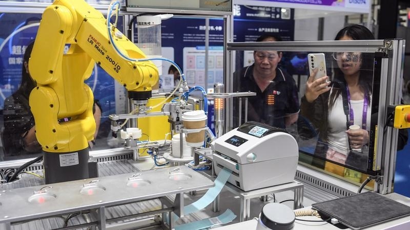 2025年9月19日,在廣西南寧國際會(huì)展中心,機(jī)器人在制作飲品。新華社記者 張愛林 攝